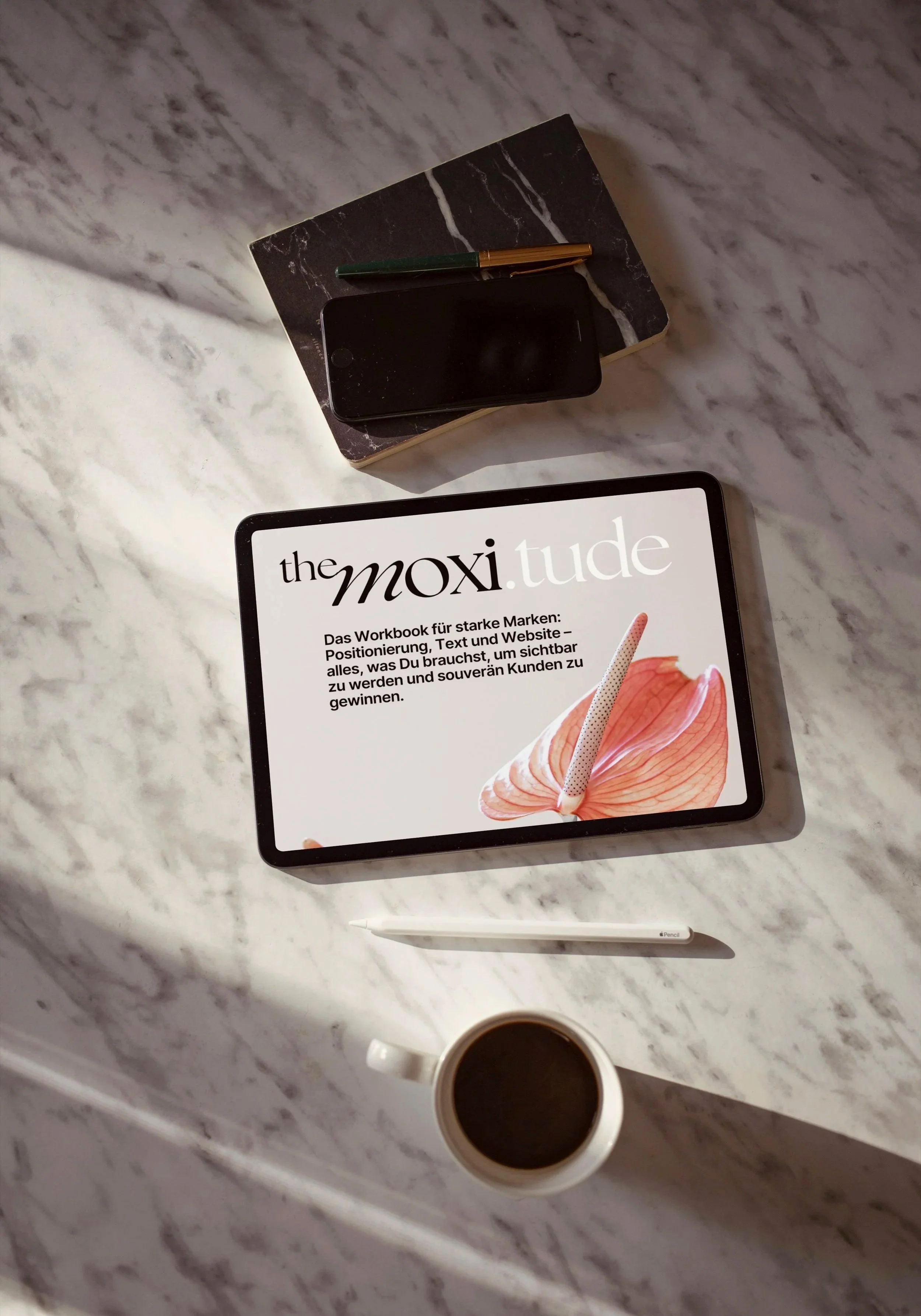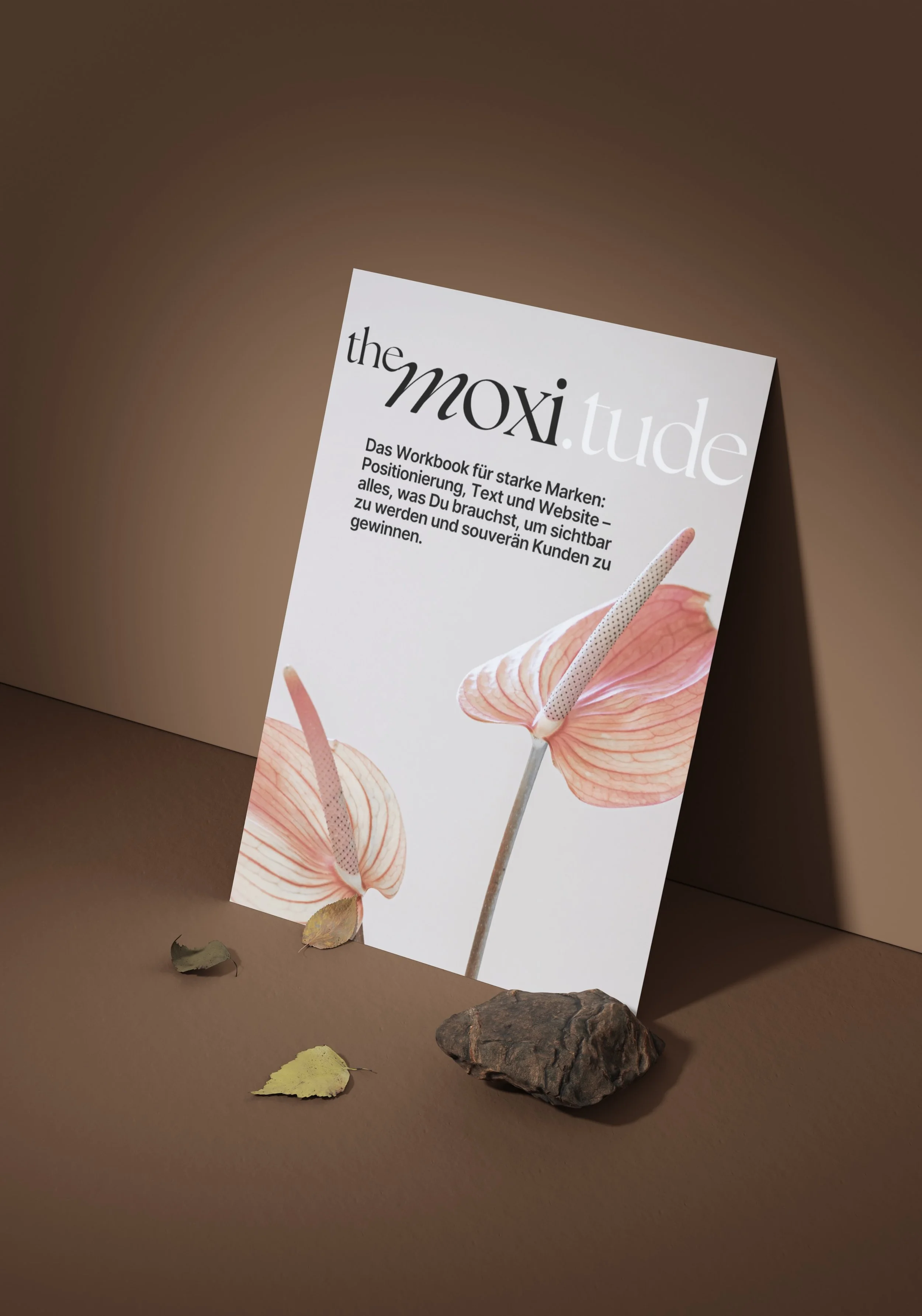 Mit den moxitude Workbooks und Guides baust Du Stück für Stück Deine Präsenz auf – klar, wirkungsvoll, authentisch. Sie geben Dir Struktur, sparen Dir Zeit und machen Dein Marketing zu etwas, das sich endlich nach Dir anfühlt.